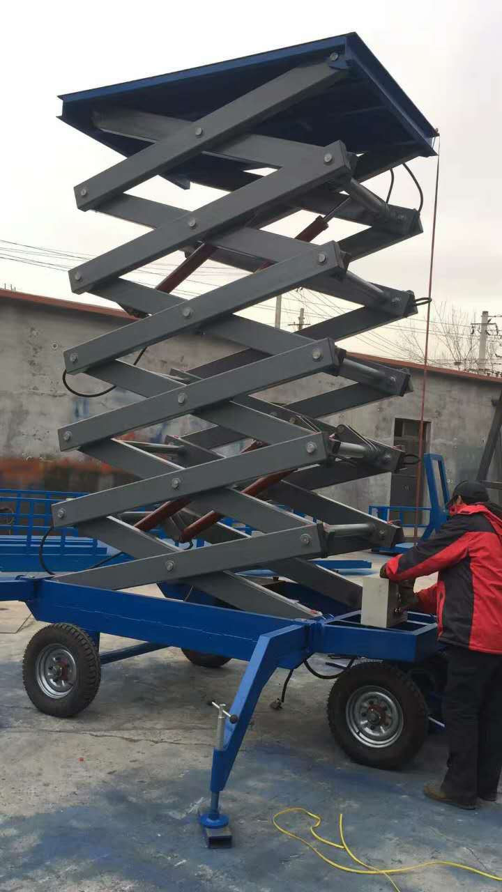 移動式升降平臺升高10米,載重1噸,調試設備中準備發貨、