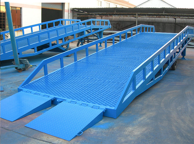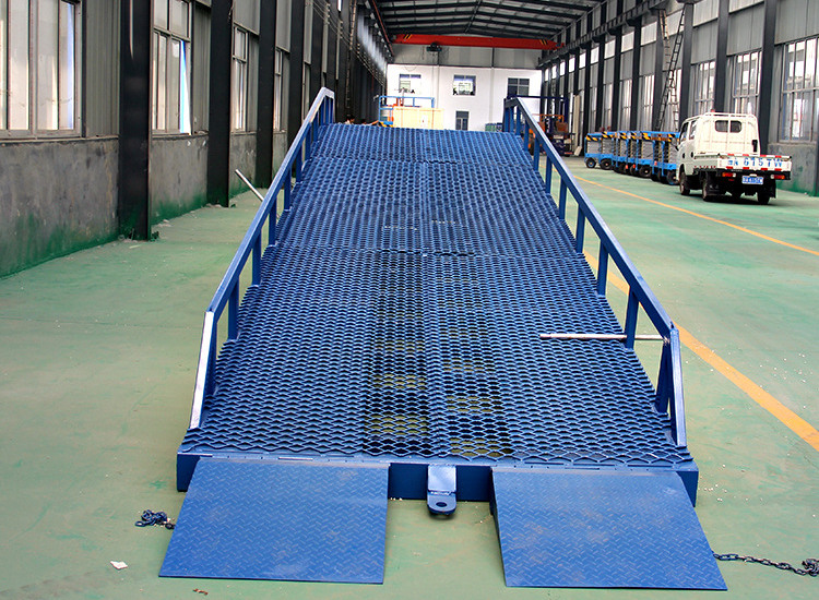 移動式登車橋在現代物流現場已是一非常易見的結構形式,它是企業物流鏈的起點與終點,是企業快速、安全周轉產品及貨物的一個裝卸貨操作平臺。 裝卸貨操作平臺的高度固定,但來往運輸車廂的廂地高度不一,運輸車輛與裝卸貨站臺之間總是形成一定的高度落差或間隙。造成搬運叉車不能進出運輸車輛直接裝卸貨物。運用登車橋提供可靠的連接。使搬運叉車能夠安全、快速地進出運輸車輛進行裝卸貨作業。使用過程平穩可靠,安全性能高,裝卸貨物時節約了大量時間,省卻了大量人力,使裝卸貨物大大的提高了效率。臺面采用特制的菱形網格板有可靠的強度,能保證長期使用而不變形。它的菱形網狀結構,充分保證了卓越的防滑性能,使叉車有更好的爬坡性和可操縱性,即使在雨、雪天氣,仍能保證正常使用。