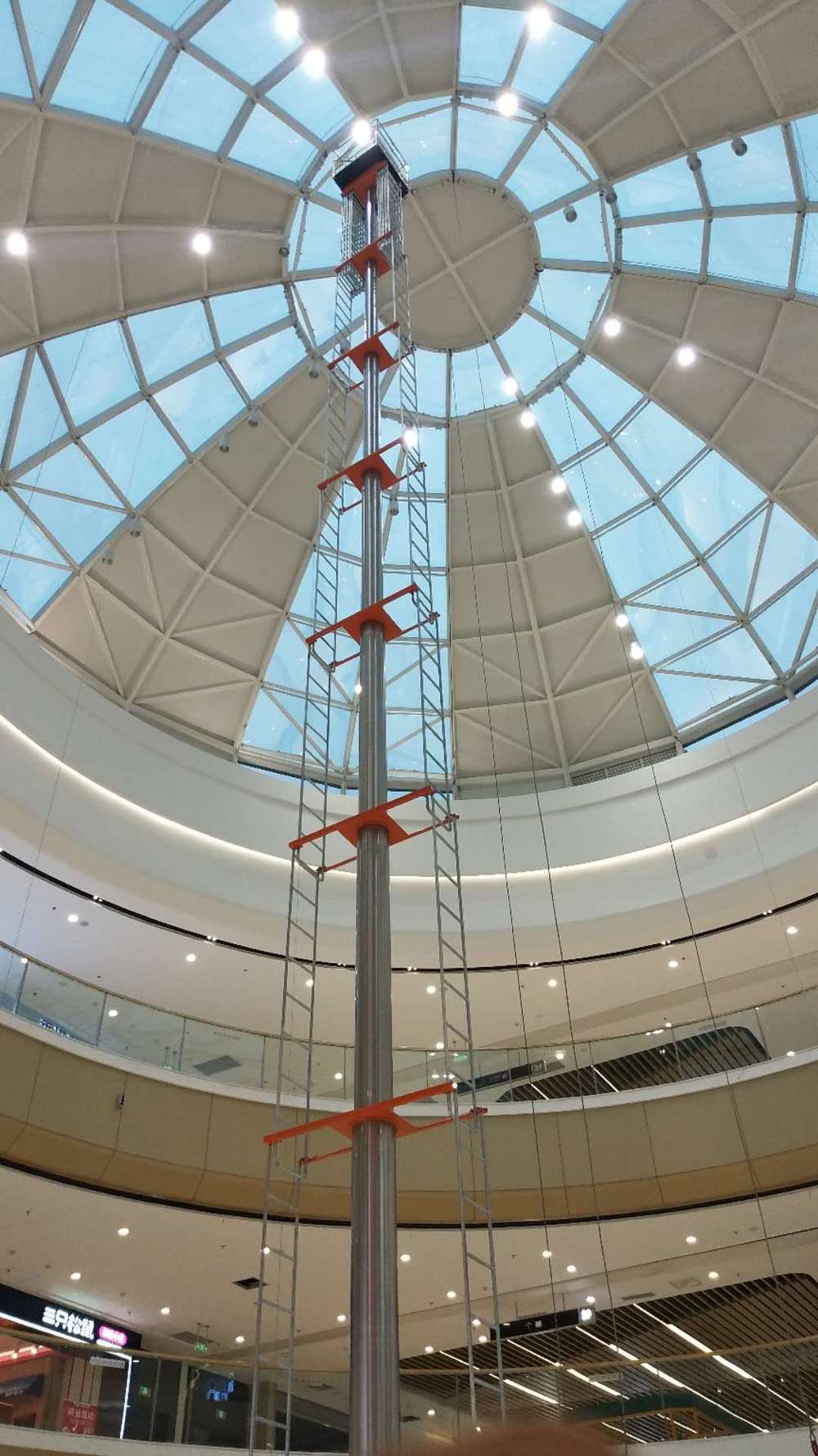 整機由平臺、伸縮油缸、單梯式套缸升降平臺或雙梯式防轉機構、底盤油箱、支腿、行走輪等組成。平臺有伸縮油缸直接頂升,當啟動電機時,有電機帶動齒輪泵供油,油液經單向閥及電磁通道輸入油缸,伸縮油缸則逐節(jié)上升,當平臺升到高度時系統(tǒng)壓力也就達到了額定工作壓力,此時有溢油閥卸荷,油壓保持在恒定的工作壓力,停機后單向閥保壓,平臺便停留在的工作位置,平臺可根據(jù)現(xiàn)場的作業(yè)高度在高度以下任意位置停留。