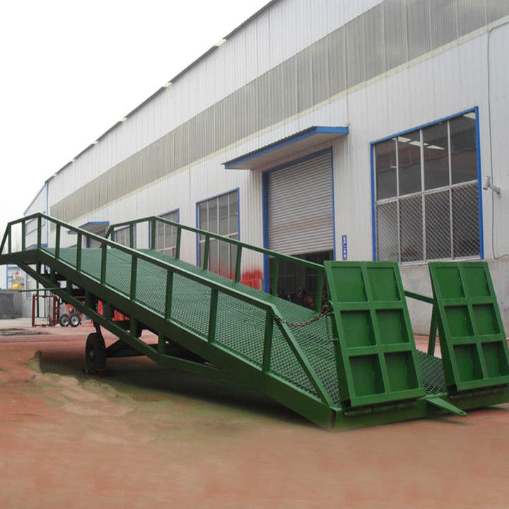 移動式液壓登車橋是與叉車配合使用的貨物裝卸輔助設備,可根據汽車車廂的高低調節高度,叉車可以直接通過本設備駛入車廂內部進行貨物的批量裝卸,僅需單人作業,即可實現貨物的快速裝卸。它使企業減少大量勞力,提高工作效率,獲取更大經濟效益。