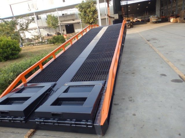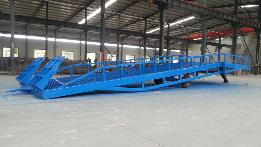 移動式液壓登車橋廣泛用于無裝卸設備的貨臺以及流動裝卸場所,是與叉車配合使用的貨物裝卸輔助工具,借助該設備,叉車能直接駛?cè)肫囓噹麅?nèi)部進行批量裝卸作業(yè)。只需單人操作,不需動力電源,即可實現(xiàn)貨物的安全快速裝卸。即可使您減輕勞動強度,又能成倍提高裝卸作業(yè)效率,加快物料流通速度,獲取更大經(jīng)濟效益。