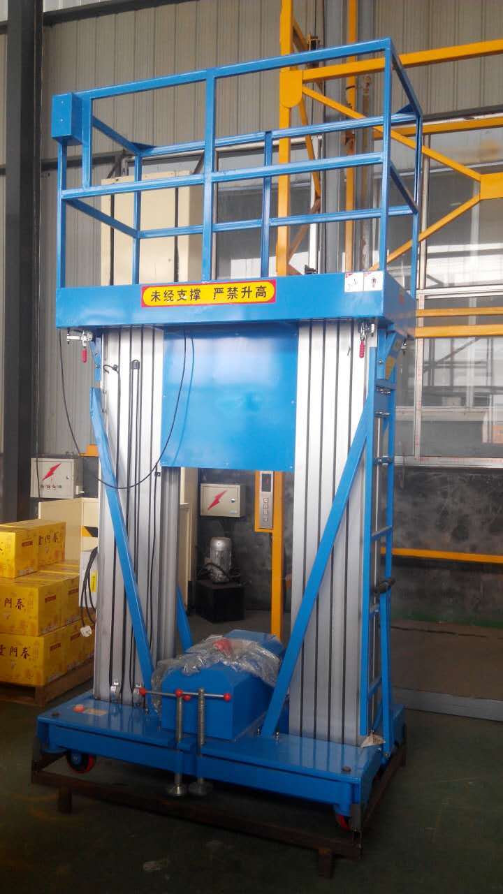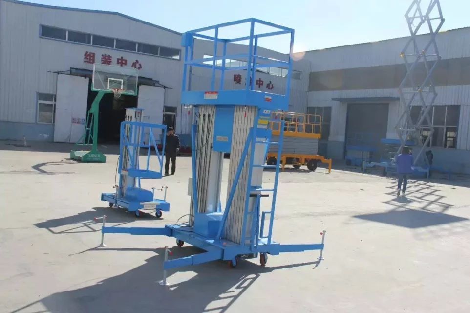 整體采用高強度鋁型材精制而成由于型材強度高,具有造型美觀、體積小、重量輕、結構緊湊、移動方便、升降平臺平穩、操作方便、安全可靠等優點。令高空作業更方便快捷,能夠快速、慢速行走,可調速,是現代企業高效安全生產之理想高空作業設備。主要產品分為單立柱鋁合金,雙立柱鋁合金,三立柱鋁合金、四立柱鋁合金。