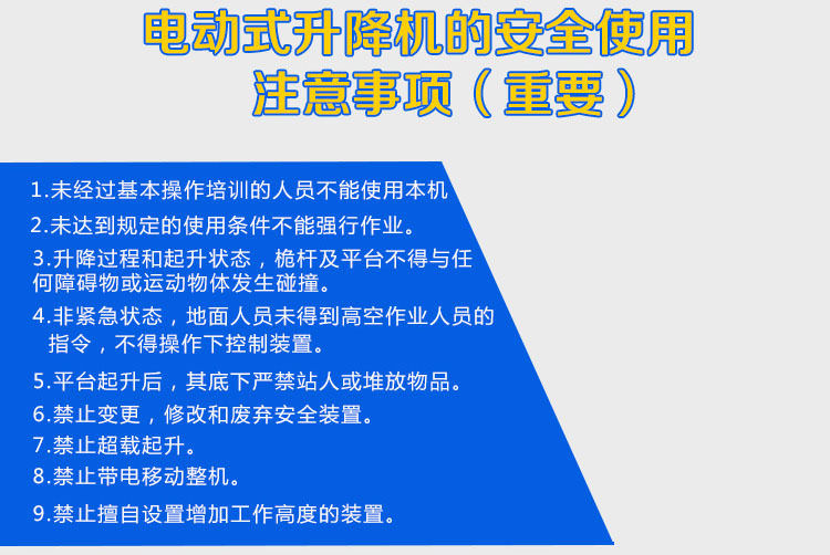四:安全性高,采用上下雙控安全低壓操作按鈕,配備一鍵式緊急停止及意外失去電源的應急下降裝置,提高了設備的安全性。