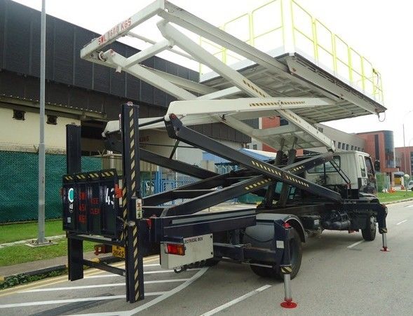 車載式升降平臺將升降平臺固定在電瓶搬運車或貨車上,借用各種車型底盤加固平臺底架。支撐腿樣式分為液壓自動式和手動螺旋式。